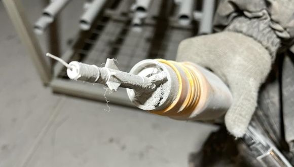 Порошковая краска, подлежащая повторному использованию, должна быть просеяна через вибросито. Порошок засыпается в бункер-приемник с ситом, под воздействием вибрации, частицы меньше ячеек полотна сетки (250 мкр.) просеиваются, а частицы размером больше ячеек сита остаются на сетке(ссор, частицы стружки металла, частицы песка, сварочные окалины и другое).